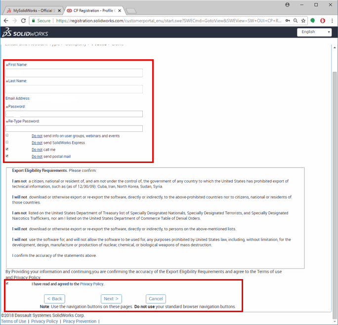 Re: Uporabniški račun za SOLIDWORKS Customer Portal