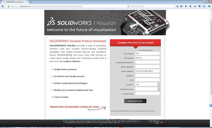 S tem se vam prenese inštalacijska datoteka SOLIDWORKS Visualize. Po inštalaciji in prvem zagonu program zahteva aktivacijo produkta. Za aktivacijo uporabite isto serijko številko katero imate za SOLIDWORKS Professional oziroma Premium paket.