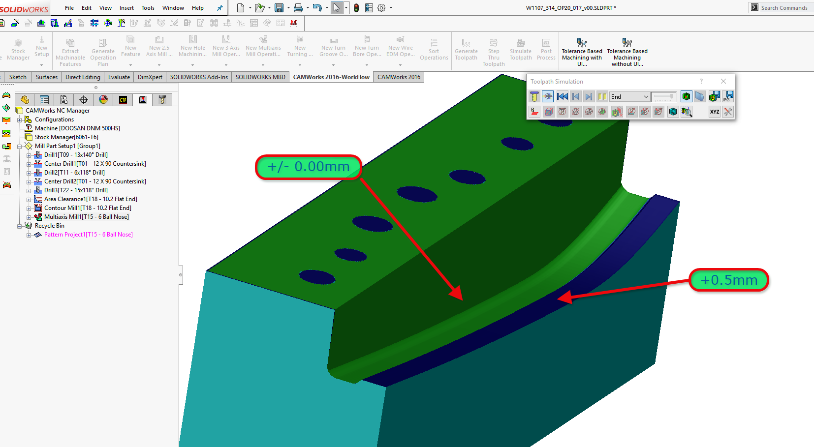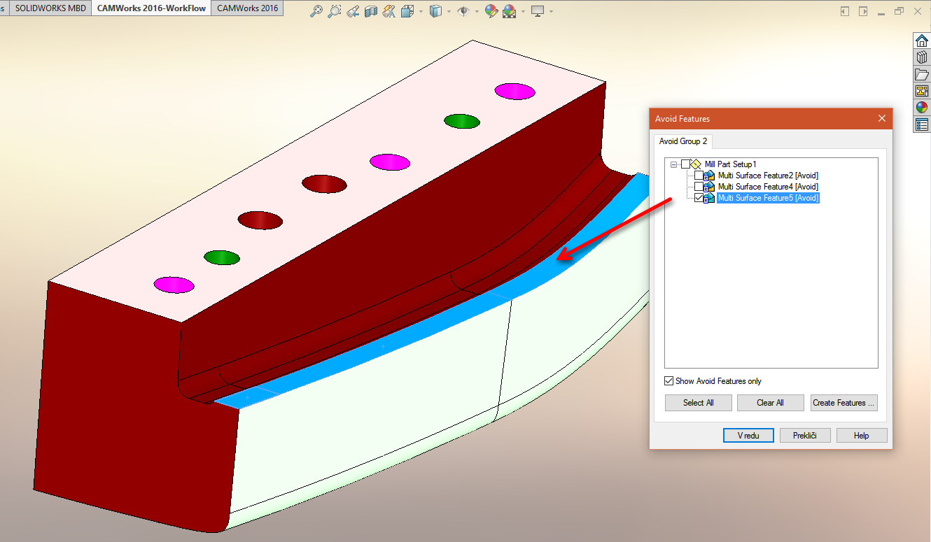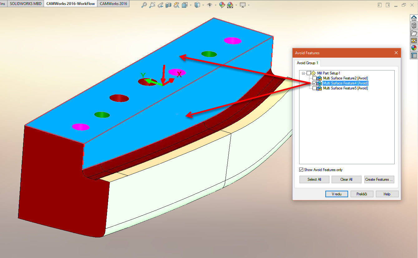 Lahko naredimo več operacij in nastavimo dodatek oz. odmik na določeni površini. To lahko naredimo tudi v eni operaciji s pomočjo Multiaxis operacije.