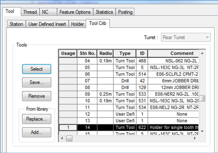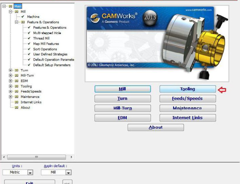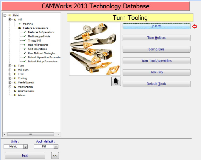 8. Zaprite TechDB in odprite bazo orodja za vaš stroj v CAMWorks -> Machine -> Tool Crib
