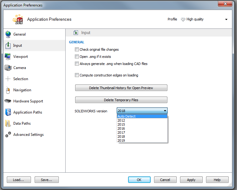 V SOLIDWORKS Composer kliknite File->Preferences->Input