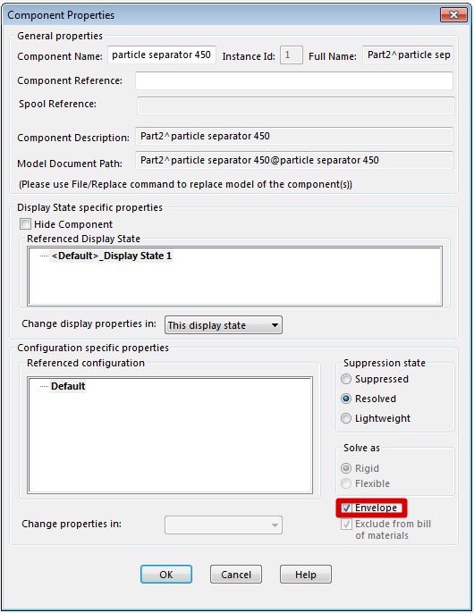 V oknu, ki se odpre, dodamo kljukico pred "Envelope". Samodejno se doda tudi kljukica "Exclude from bill of materials". To pomeni, da Envelope elementi niso vključeni v kosovnico.