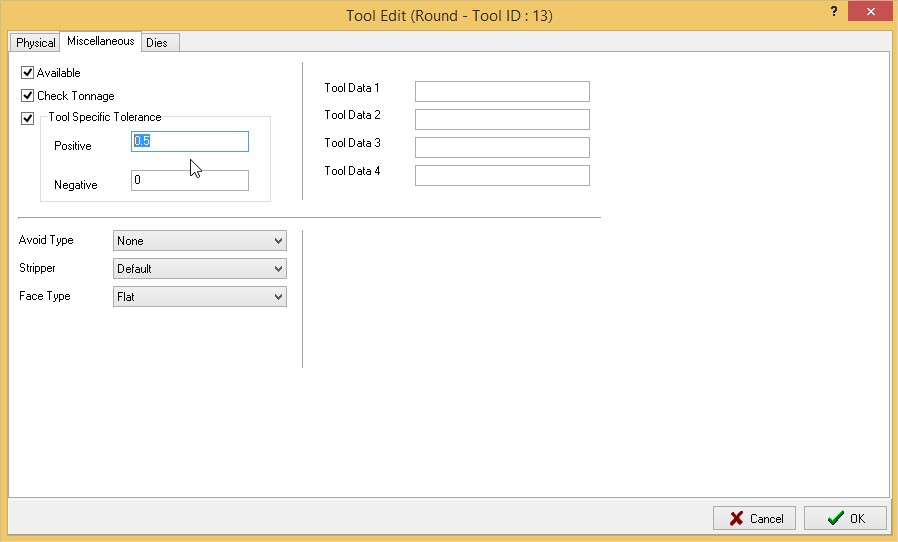 V SigmaNEST lahko med parametri orodja nastavimo tudi toleranco, specifično za to orodje.