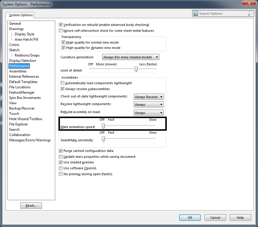 - Zaženite SOLIDWORKS nastavitve (Tools->Options)