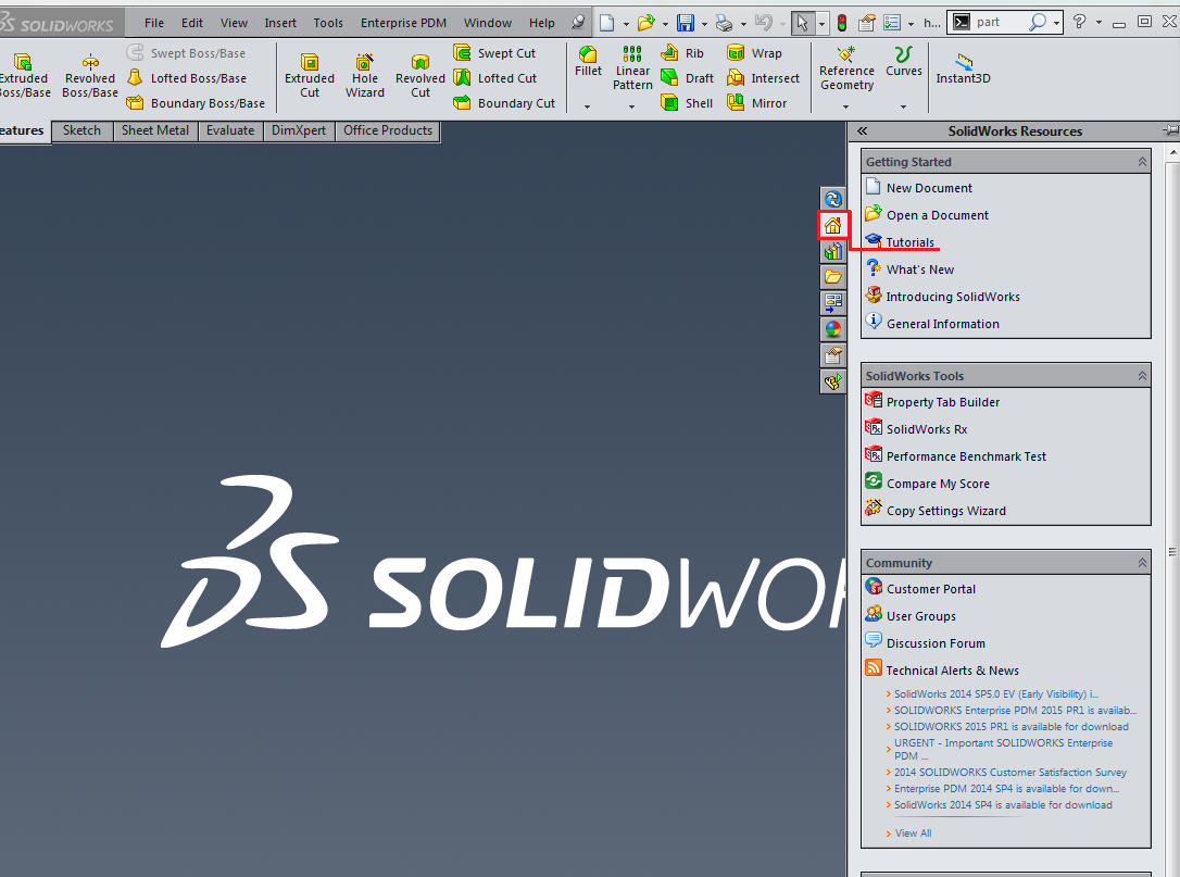 Solidworks Resources -> Tutorials Odpre ti novo okno "SOLIDWORKS Tutorials". Pod "Productivity Tools" najdi "FeatureWorks".