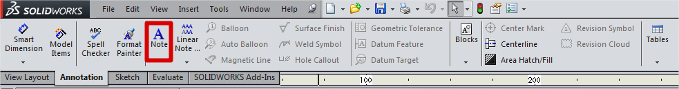 Glavo se sedaj lahko poljubno spreminja z elementi iz skic. V glavi so tudi že nekatere opombe, ki jih lahko spreminjamo. Opombe lahko tudi dodajamo z ukazom "Note" (zavihek Annotation).