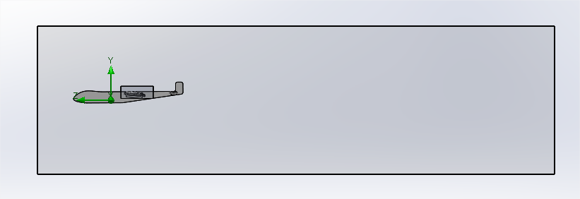 Sredina letala naj bo točno na desni ravnini (Right Plane) sestava. Smer zraka je v –Z smeri. Letalo postavite torej tako, da bo gledalo v z smeri. Začetek letala naj bo od začetka računskega območja oddaljen približno 10cm. Letalo naj bo postavljeno približno na sredino med zgornji in spodnji rob računskega območja. Poskrtbite, da je tudi kot letala glede na veter primeren.
