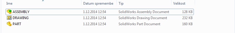 - Postopek ponovimo še za preostale datoteke Assembly in Drawing.