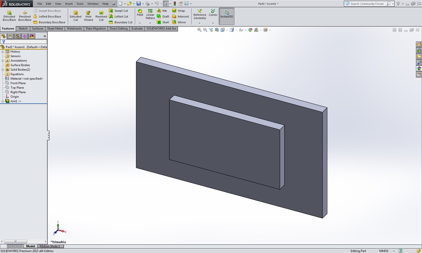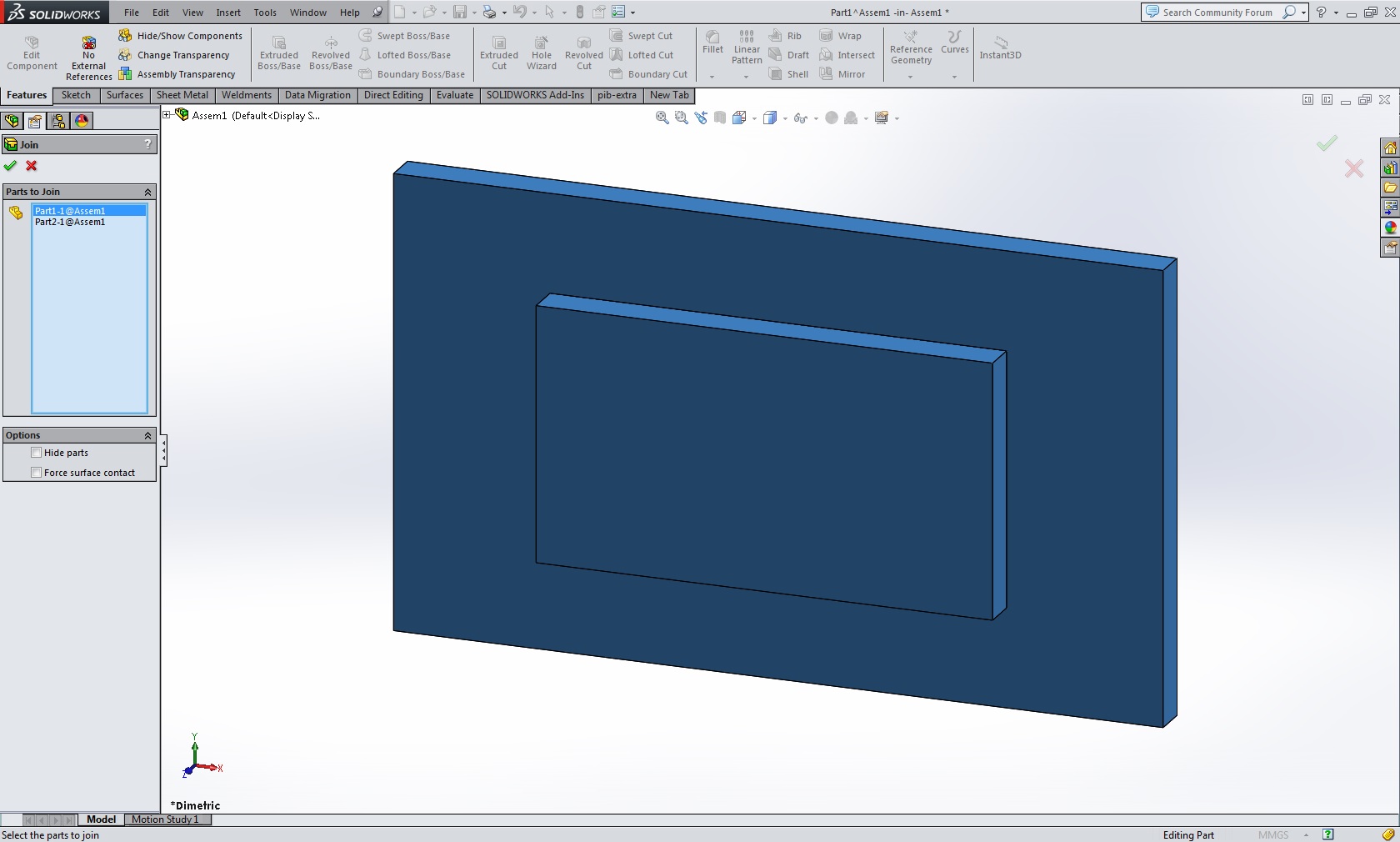 - Editiramo novi kosi (Edit Part) da omogočimo funkcijo Join (Insert -> Features -> Join) v sestavu