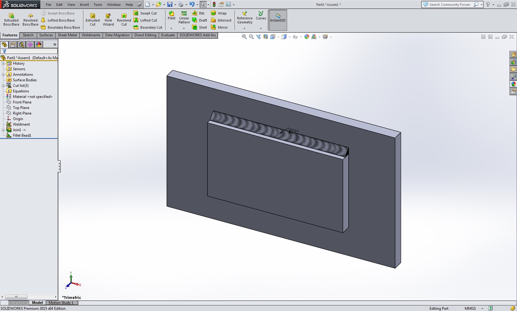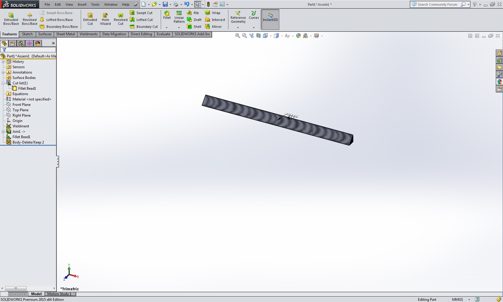 - Ko potrdimo Fillet Bead funkcijo vidimo da imamo sedaj novo telo ki nam predstavlja zvar.