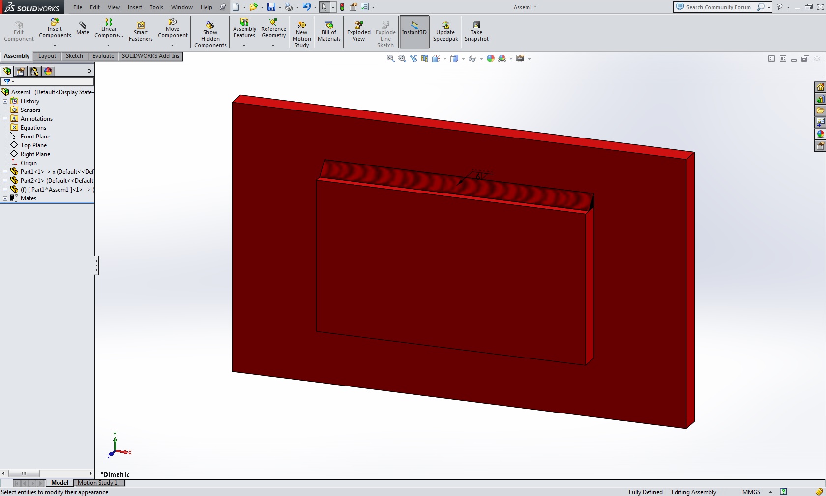 - Shranimo in zapremo kos in se vrnemo na sestav in kot vidimo imamo dodano telo ki nam predstavlja zvar in ga obarvamo v željeno barvo.