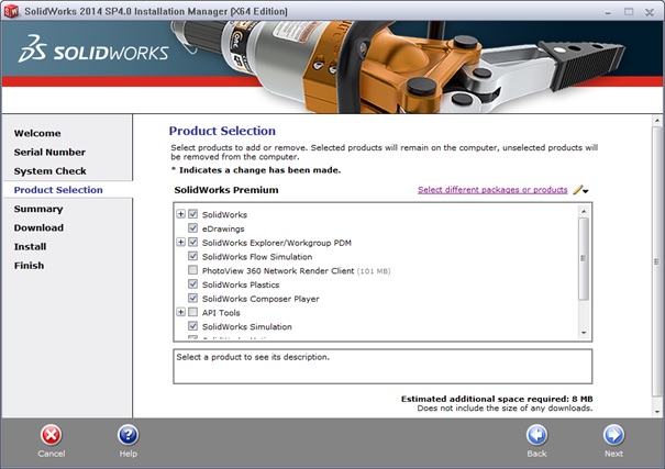 - U prozor Product Selection odaberemo SolidWorks paket ako je potrebno i kliknemo »Next«