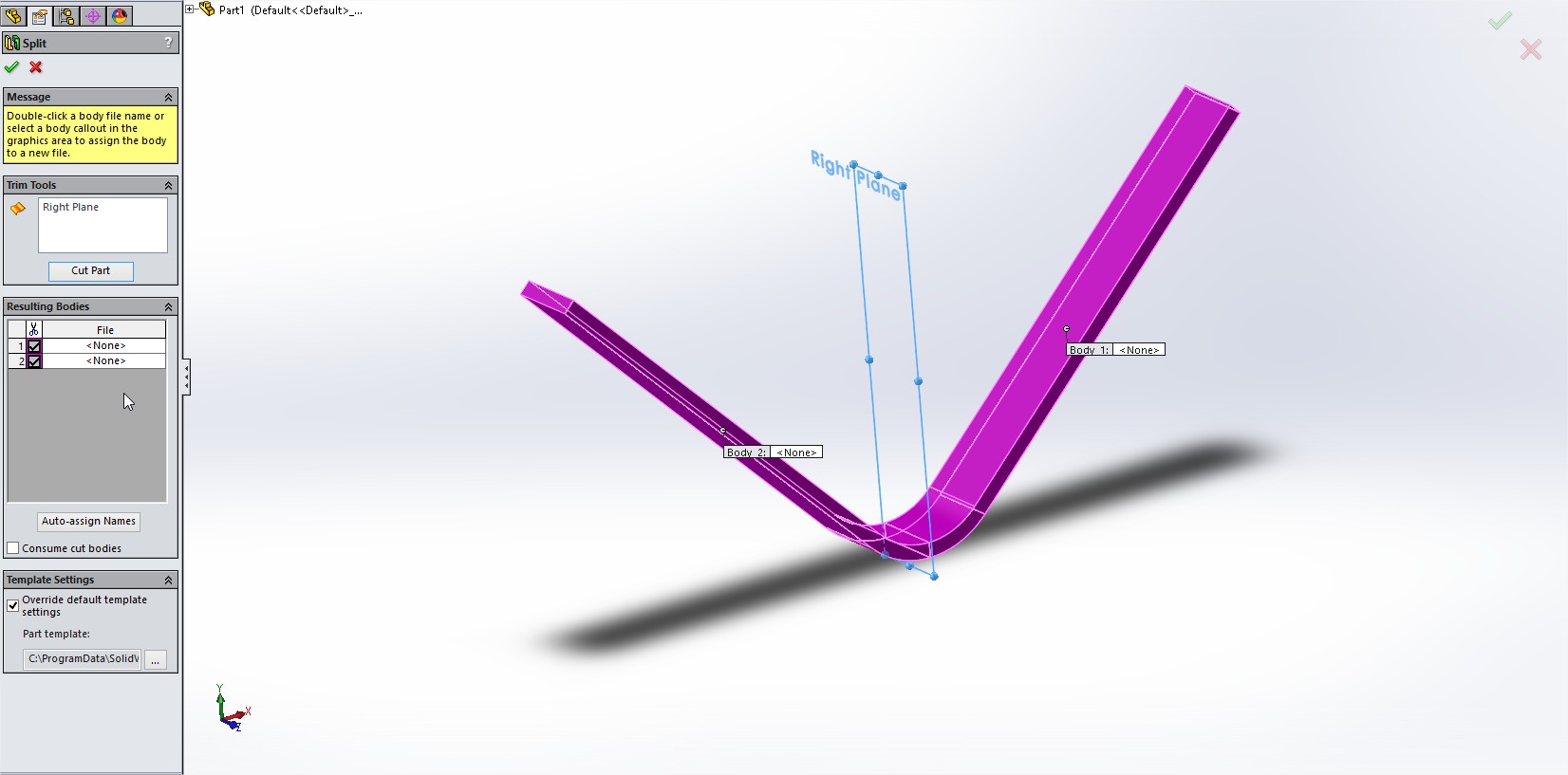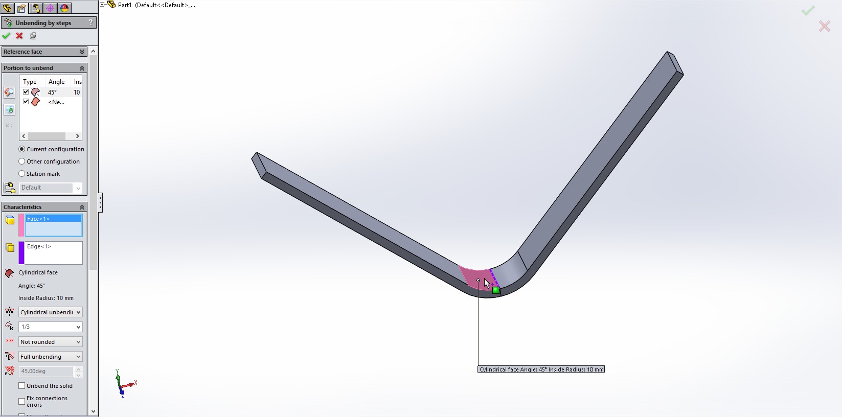 Nato s funkcijo Unbending by Steps izravnamo najprej prvo, nato drugo polovico. Referenca (vijolični rob) naj bo vedno novo nastali rob.