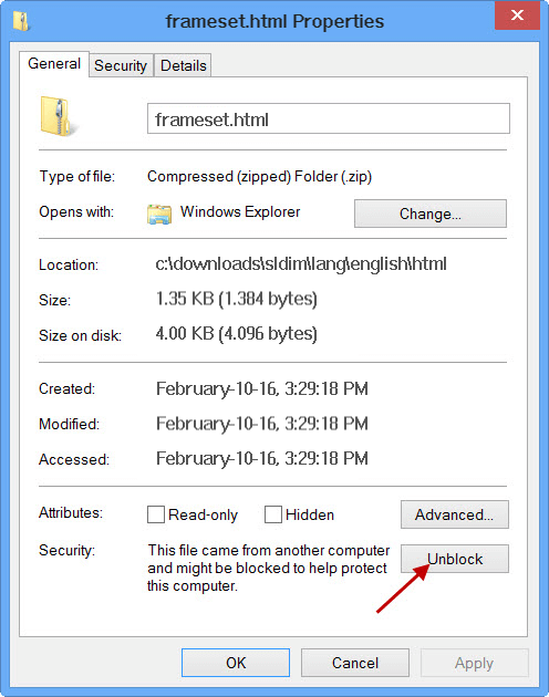 3. Če je v spodnjem desnem kotu prikazan gumb Unblock, kliknite nanj in nato na gumb OK