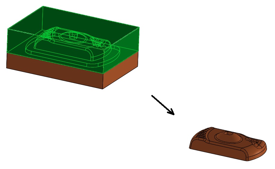 c) Izdelamo telo iz negativne geometrije (uporabno pri kalupih pri katerih imamo izrisano orodje brez ulitega/osvnovnega dela) kot na sliki: