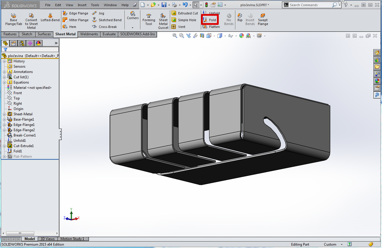 Vse kar nam preostane je, da nazaj zvijemo pločevino. To naredimo z ukazom "Fold". Ukaz "Fold" ima enak uporabniški vmesnik kot ukaz "Unfold".