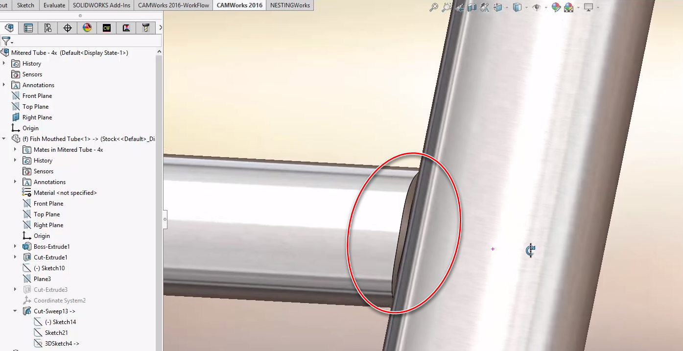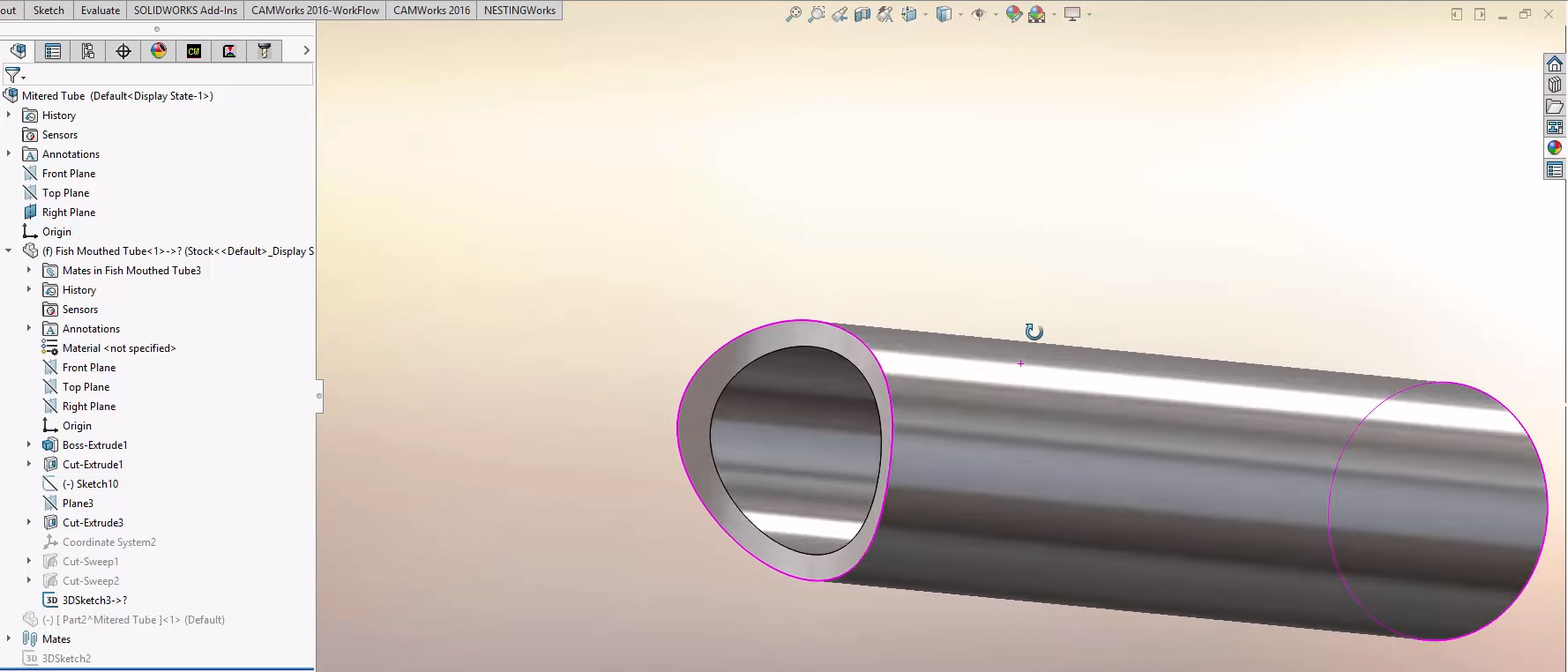 1. Model, ki je prikazan na spodnji sliki je cev, ki bo pritrjena na drugo cev pod nekim kotom.