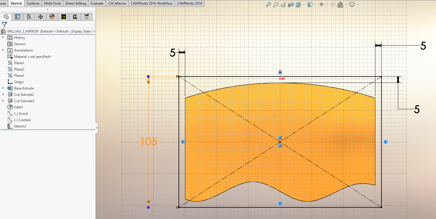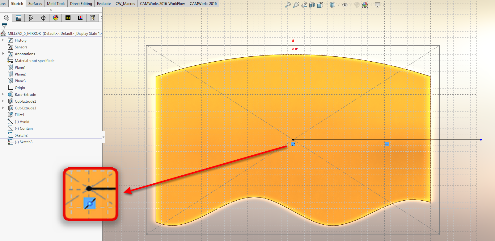 Za zrcaljenje v CAMWorks-u potrebujemo črto okoli katere želimo zrcaliti pot obdelave.