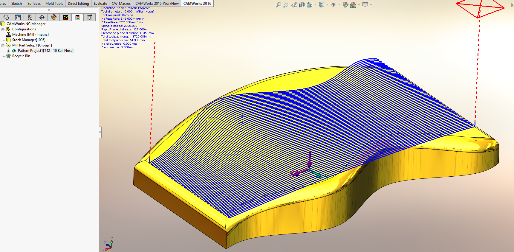 9. Ponovno izračunamo pot orodja Generate Toolpath in dobimo rezultate, kot so prikazani na spodnji sliki.