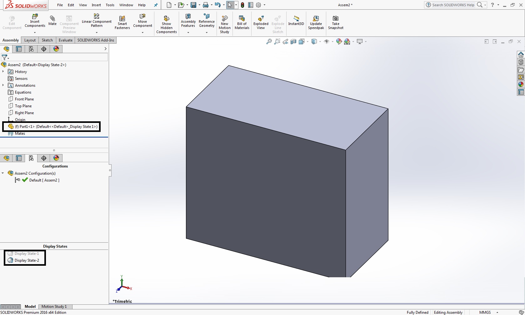 Ko zamenjamo Display State na Display State-1 vidimo da je kos skrit v sestavu.