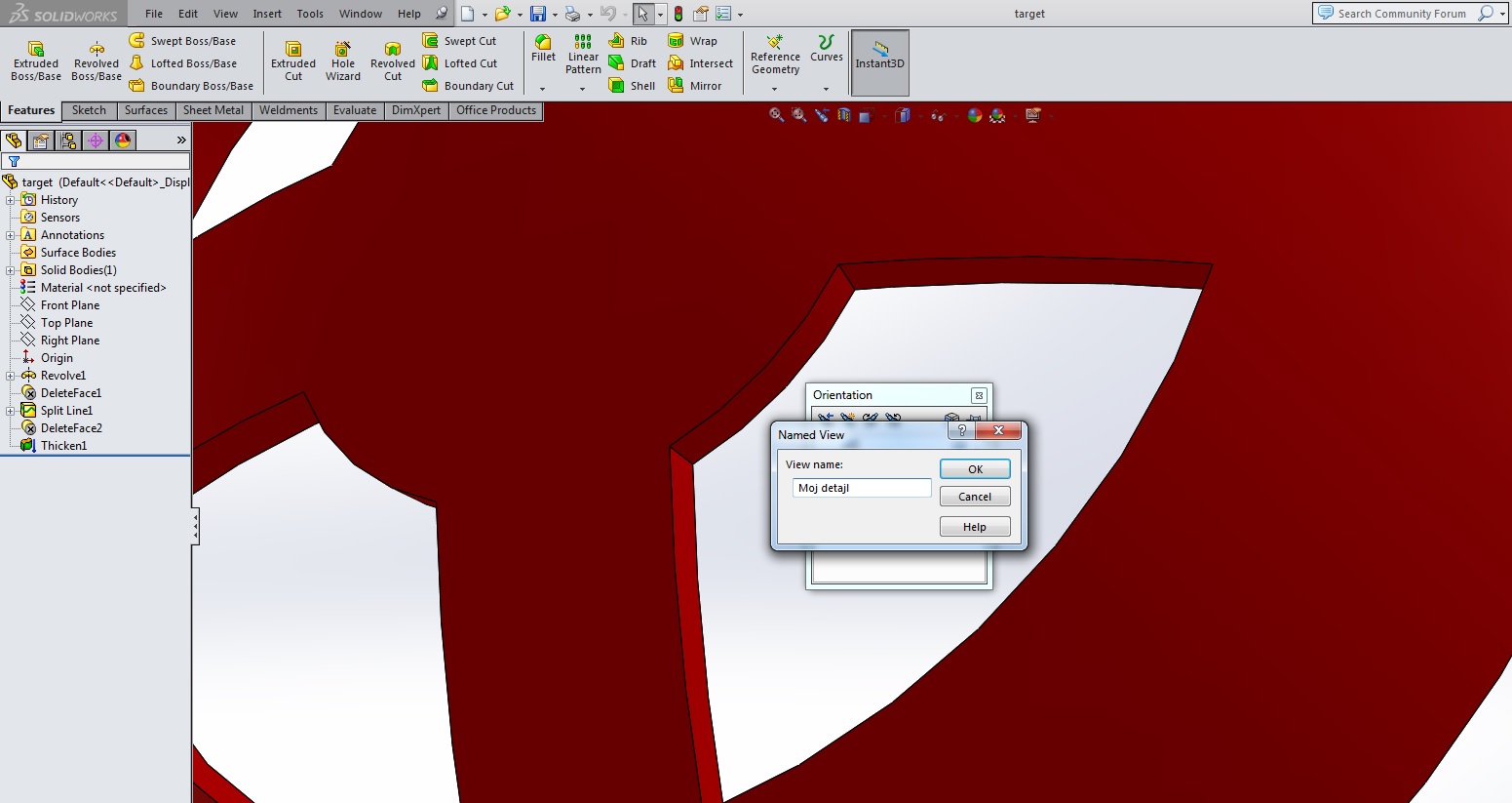 Poleg standarnih pogledov SOLIDWORKS-a si lahko shranimo poljubno število svojih pogledov.