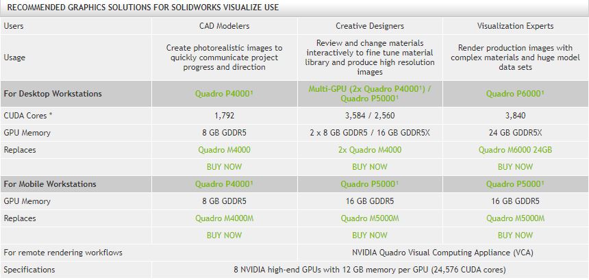 Re: Priporočena strojna oprema za SOLIDWORKS Visualize